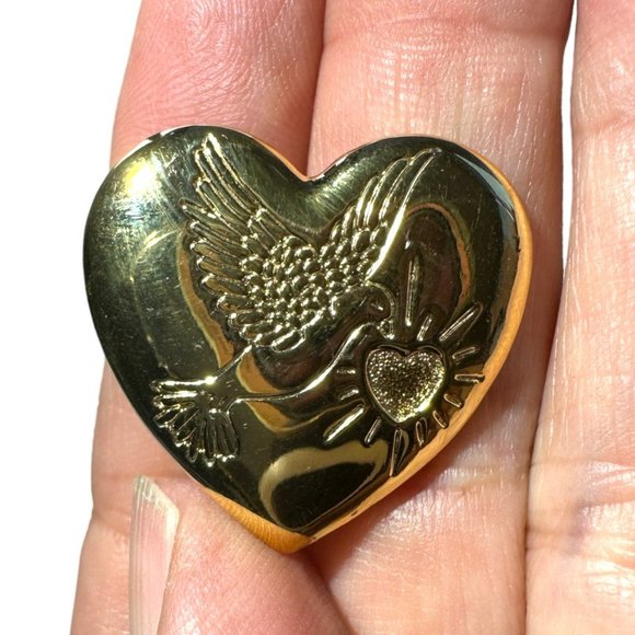 The Variety Club Vintage Brooch / Pin Gold Tone - Heart with Dove & Heart