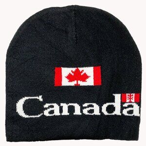 Variety To Go Canada Maple Leaf Beanie Hat, Black Beanie with Canada Flag
