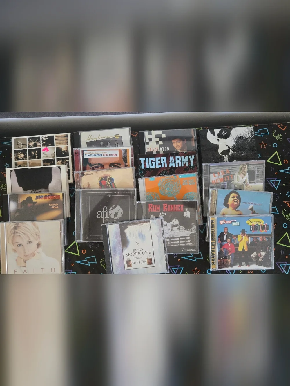 Assorted music CDs presented as a multi-color collection. Includes a variety of artists and genres for immediate listening. Great for expanding a personal music library or sampling new albums. Multi-color packaging adds visual variety.