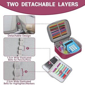 ✎DURABLE:The Vaschy large pencil case is made of polyester which is sturdy and durable, and it is especial large capacity which holds at least 72 pieces pencils. This pencil holder is built to be lasting and highly tear-resistant, a good stationary holder for office, school, daily use. ✎EASY ORGANIZATION:This pencil case is constructed with better functional sections. Three layers with elasticated slots are designed for coloring pencils, highlighter, markers or regular pens, making your pencils and pens well organized.Three mesh pockets collect not only small accessories such as ruler, eraser, glue stick and cards, but also larger item—calculator. LARGE CAPACITY:Dimension: Exterior: 25x19.5x7.5cm/ 9.8x7.6x2.9in