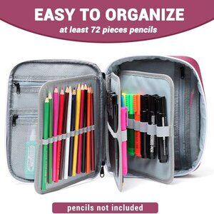 ✎EASY ORGANIZATION:This pencil case is constructed with better functional sections. Three layers with elasticated slots are designed for coloring pencils, highlighter, markers or regular pens, making your pencils and pens well organized.Three mesh pockets collect not only small accessories such as ruler, eraser, glue stick and cards, but also larger item—calculator.