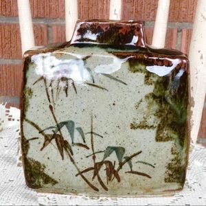 Beautiful Rectangle Pottery Vase with Bamboo detailing.From ‘Capilano Trading Post Co’ -Vancouver BC. Excellent condition. No chips or cracks.