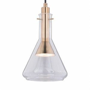 Vaxcel Bunsen Mini Pendant 1-Light LED Natural Brass Clear Glass Shade (P0286)