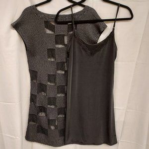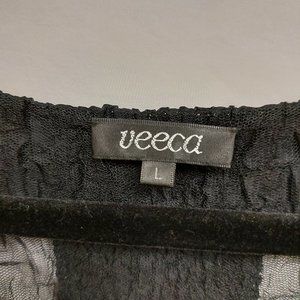 Beautiful semi sheer dress with slip, this can be worn with leggings or on its own. Its size large but I wear size 8 and this fits me nicely. Would also look great belted.