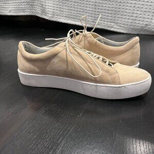 Versatile everyday sneaker with a minimal design. The upper is made from nude suede with rounded toes and lace-up fastening. Other details include padded collars. The chunky rubber outsoles measure 40mm.