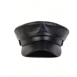 Vegan Leather Classic Beret Hat Black