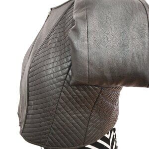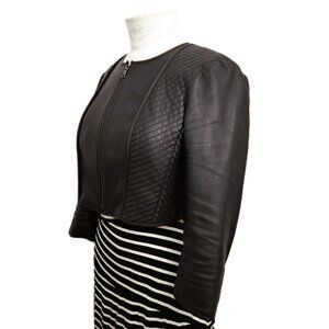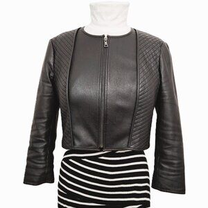 Vegan Leather Crop Biker Jacket Sz Lg Black Lined Quilted Zipped BCBGMAXAZRIA