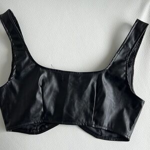 Vegan Leather Crop Top Black Sexy Edgy Look - Size 8