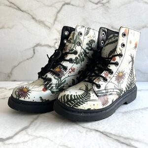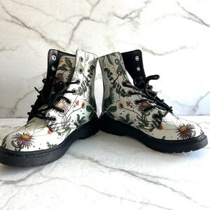 Vegan Leather doc style combat boots floral watercolour design
