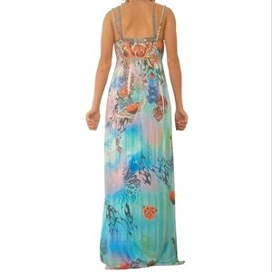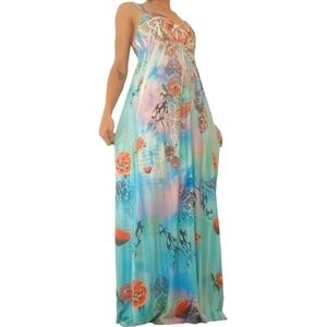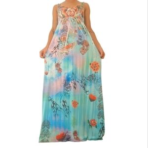 Vegas Royalty blue, pink, and red artistic roses gothic maxi dress in size Small to Medium.