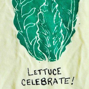 A yellow unisex T-shirt that I have hand screen-printed a cute lettuce design on to - it reads: "Lettuce Celebrate!" in green and black ink. This is a hand-crafted 100% original piece of clothing that would be perfect as a gift to yourself or for the foodie/gardener/farmer/vegan in your life! :)