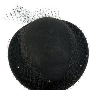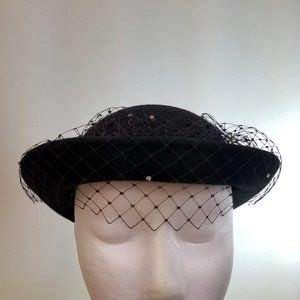 This black, stoned veil mouchoir in the Homburg and Derby Hat styles was produced in Montreal during the 1950's. It's condition is impeccable and without flaw.