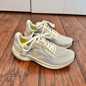 In basically brand new condition there is some minor cracking on the one logo as shown and some very minor dirt on sole otherwise brand new