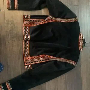 Velour Type Jacket with embroidery and spikes, orange and white stitching