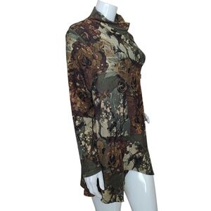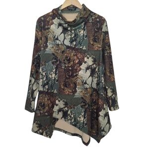 Velour Tunic Top Patchwork Cowl Neck Asymmetrical Hem Boho Artsy Fall SZ Lrg