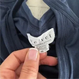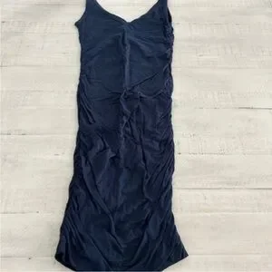 Velvet by Graham & Spencer v-neck jersey Ruched mid length dress. navy blue dress is perfect for any occasion. Its sleek design offers a flattering fit, making it a versatile addition to your wardrobe.