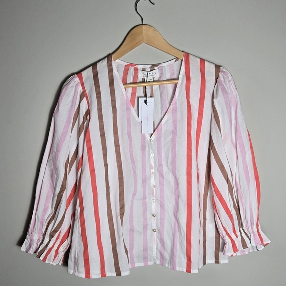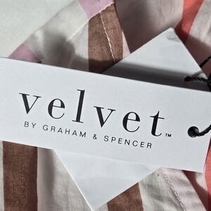 Velvet By Graham & Spencer Striped V-Neck Blouse - Pink, Brown, White, NWT