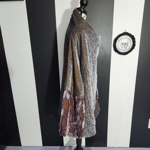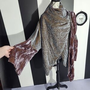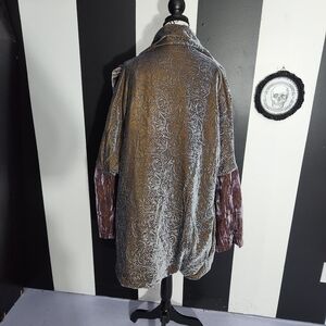 color shifting velvet with filigree print. the sleeves are a bell with crushed velvet