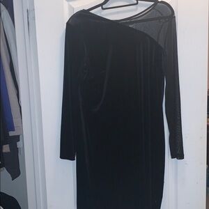 Velvet Dress with one shoulder mesh sleeve