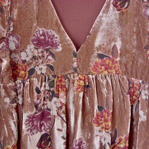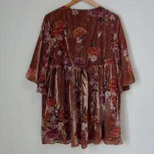 Velvet Floral Mini Dress Floral Boho Babydoll V-neck Burn Out Flowy ~ Size Small ~ By Together ~ no fabric tag