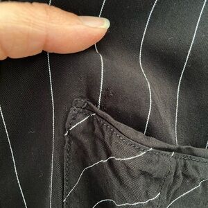 Women’s relaxed fit, black with white striped, long sleeve (optional 3/4 sleeve) pocket dress