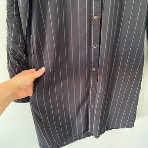 Velvet Heart Black And White Striped Long Sleeve Button Front Pocket Shirt Dress