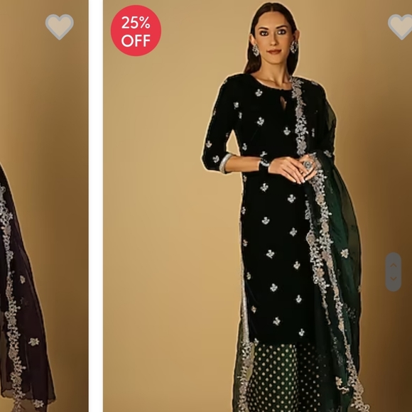 Monk & Mei velvet kurta set purchased from Pernia's Pop up Shop. Comes with a georgette palazzo bottom with organza embroidered dupatta. Size L. Paid over 250 with customs.