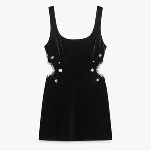 Elegant black sleeveless dress from Zara. Rhinestone details, two cutouts on the waist. So cute and perfect for holiday dinners and parties!