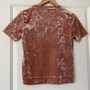 Salmon pink crushed velvet t-shirt style top with short sleeves