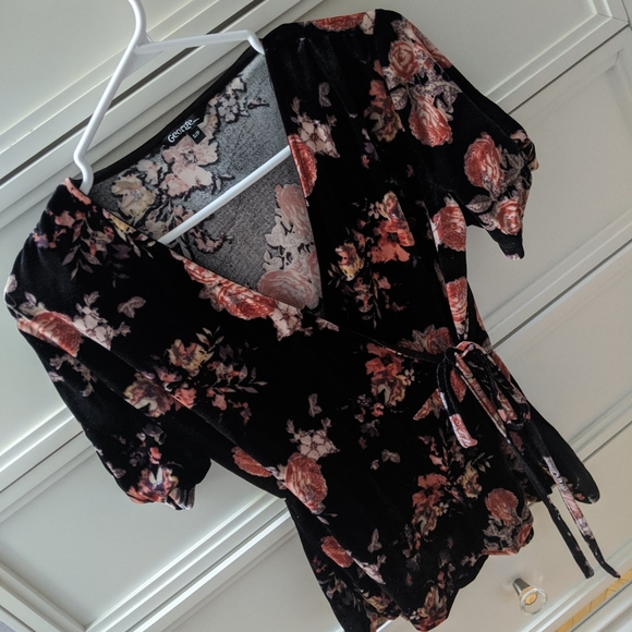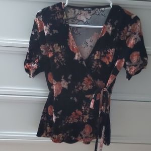 A Black Soft Velvet floral top with a tie on the side, It is brand new just don't have label. The material is really nice for velvet. I think this would fit small to medium as well because it was a little lose for me.