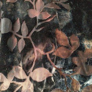 This top's beauty is hard to describe - i hope the pictures capture. The front and back are lace, it has some reflections in the light so you will note the top is dark chocolate brown however in the light is tows other colour shades. the flowers outside of the velvet are also sheer. just a jewel of a piece.