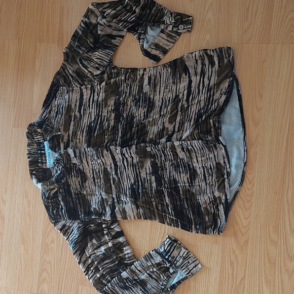 cream and khaki animal print velvet button up blouse