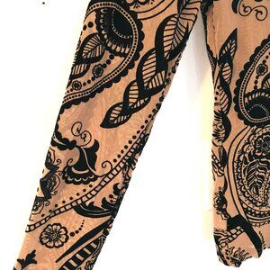 Velvet burnout shirt women's S/M black/brown stretch semi-sheer whimsy event