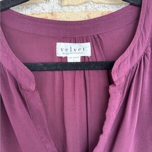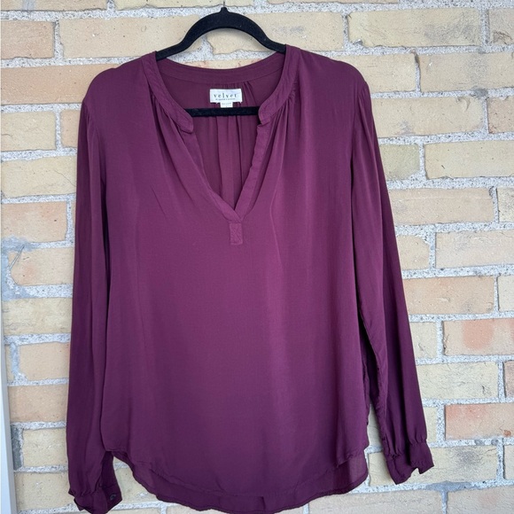 Velvet by Graham and Spencer Burgundy Relaxed Blouse with Long Sleeves