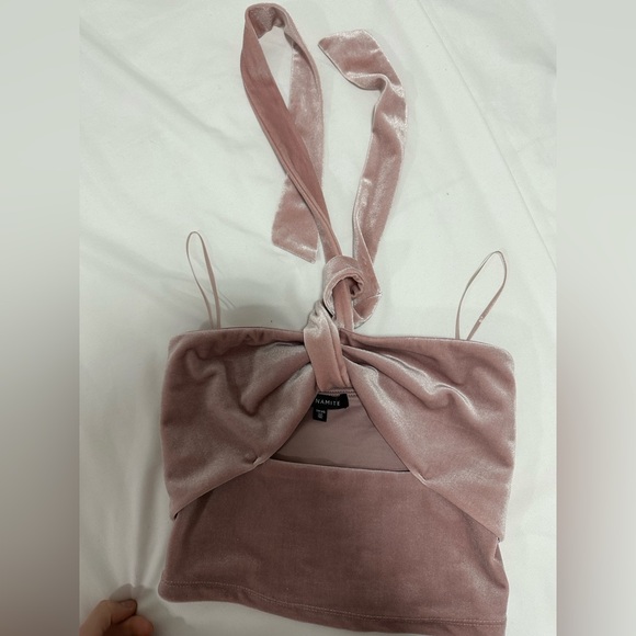 Pink velvet halter top