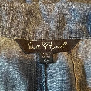 Great pre owned condition minimal signs of wear. Is missing a button in the front right above the tie waist.