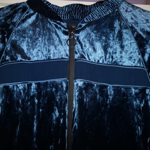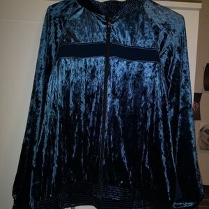 Velvet blue jacket with mesh detailing slightly oversized size large. Never worn
