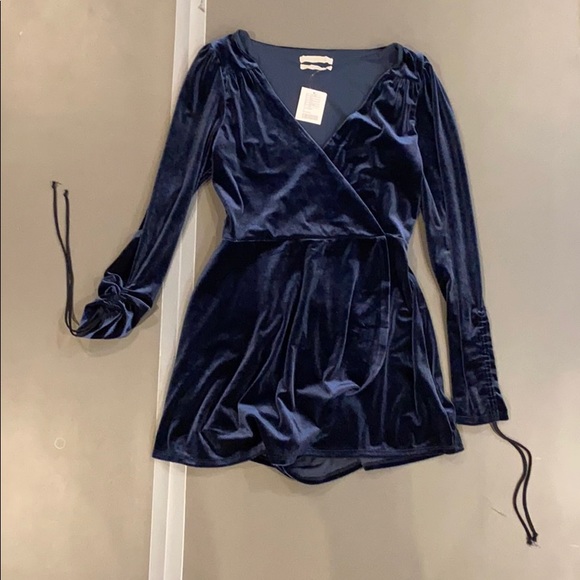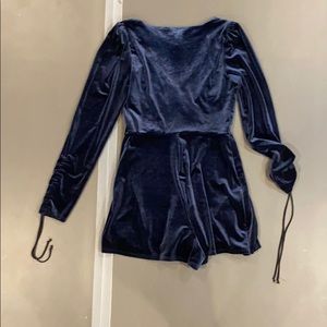 BRAND NEW WITH TAGS! Navy blue velvet romper with cinchable sleeves perfect for an evening out!