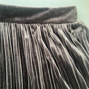 Beautiful full, pleated skirt in a velvety pewter colour. Soft and comfortable; also elegant and easy to dress up or down.