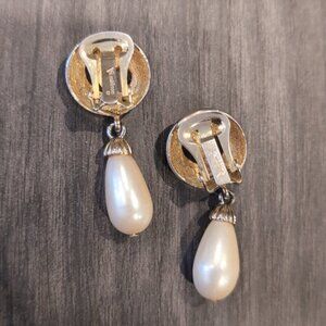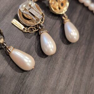 Great overall condition, there is slight wear on the pearl drops, the gold plating has worn on the front of the earrings, and a couple of pearl beads on the necklace have discoloration.