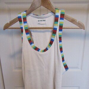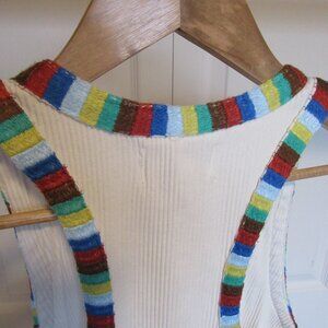 Features: Soft ribbed knit fabrication, low scoop-neckline, racerback-style, colorful contrast binding