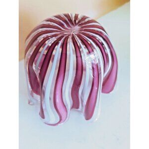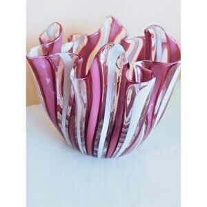 Venini Bianconi Murano Red-Pink-White Ribbons Italian Art Glass handkerchief Vase Fazzoletto