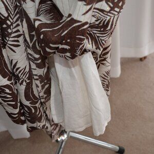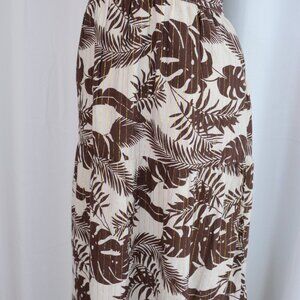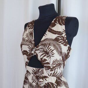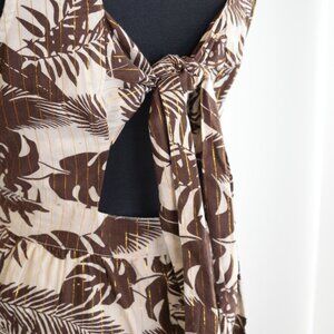 Turn heads in this Venus floral maxi dress, designed for effortless summer elegance. A great wedding guest dress. Crafted from breathable cotton, this lightweight dress features a flattering cut-out waist detail, cut out tie detailing at back, a plunging V-neckline, and a flowy tiered skirt for the perfect mix of comfort and style. The earthy brown and cream tropical print makes it an ideal choice for vacations, brunch dates, or warm-weather outings. Lined, with zip closure at side.
