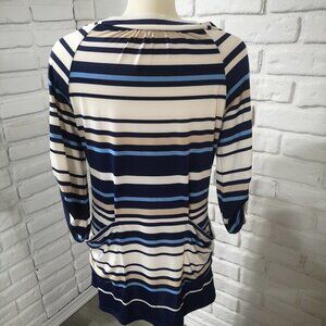 Venus Ladies White, Blue, & Tan Striped Size Small Straight Fit Beach Coverup