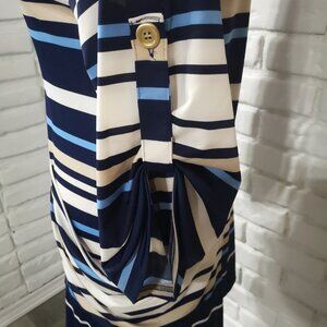 Venus Ladies White, Blue, & Tan Striped Size Small Straight Fit Beach Coverup