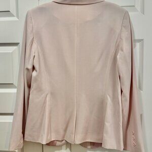 Chic and feminine light pink blazer from Venus. Features a notched lapel collar, single-button closure, and two front flap pockets with a sleek, fully lined interior. The structured fit gives a polished look perfect for work, business casual, or dressy occasions.