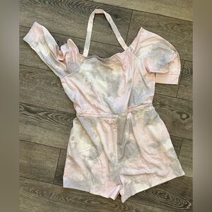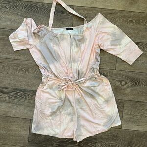 Venus NWT Pink and White Tie-Dye Off-Shoulder Romper 1X