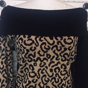 Adorable, sexy sweater, great with leggings a skirt or jeans - very versatile. Thought this was leopard print and purchased another which was similar - the reason I am selling. Brand new. I would simply label the size as small: because of the cut. My opinion; anyone from x-small to medium could wear it comfortably.