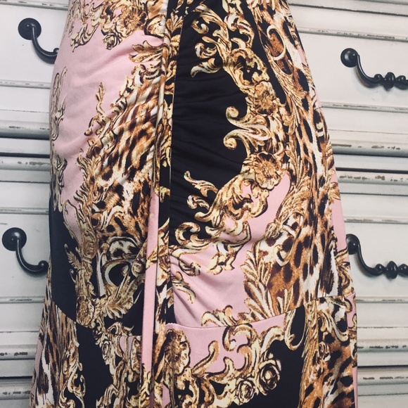 Feminine and striking, love the print! I'm 5'1, it was wishful thinking when I purchased it (too long on me)! Gathers at the side, very sexy. Just love the colour. With exchange, duty and taxes, it is not worth returning... my loss, your gain!