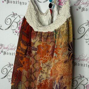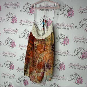 Venus USA tank top halter tie up beaded accent boho floral paisley flowy orange